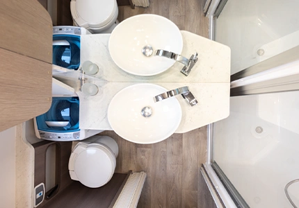 Bathroom & Ensuite: Most motorhome models have a separate shower cubicle and cassette toilet, plus a wide vanity—rare for medium motorhome rentals.